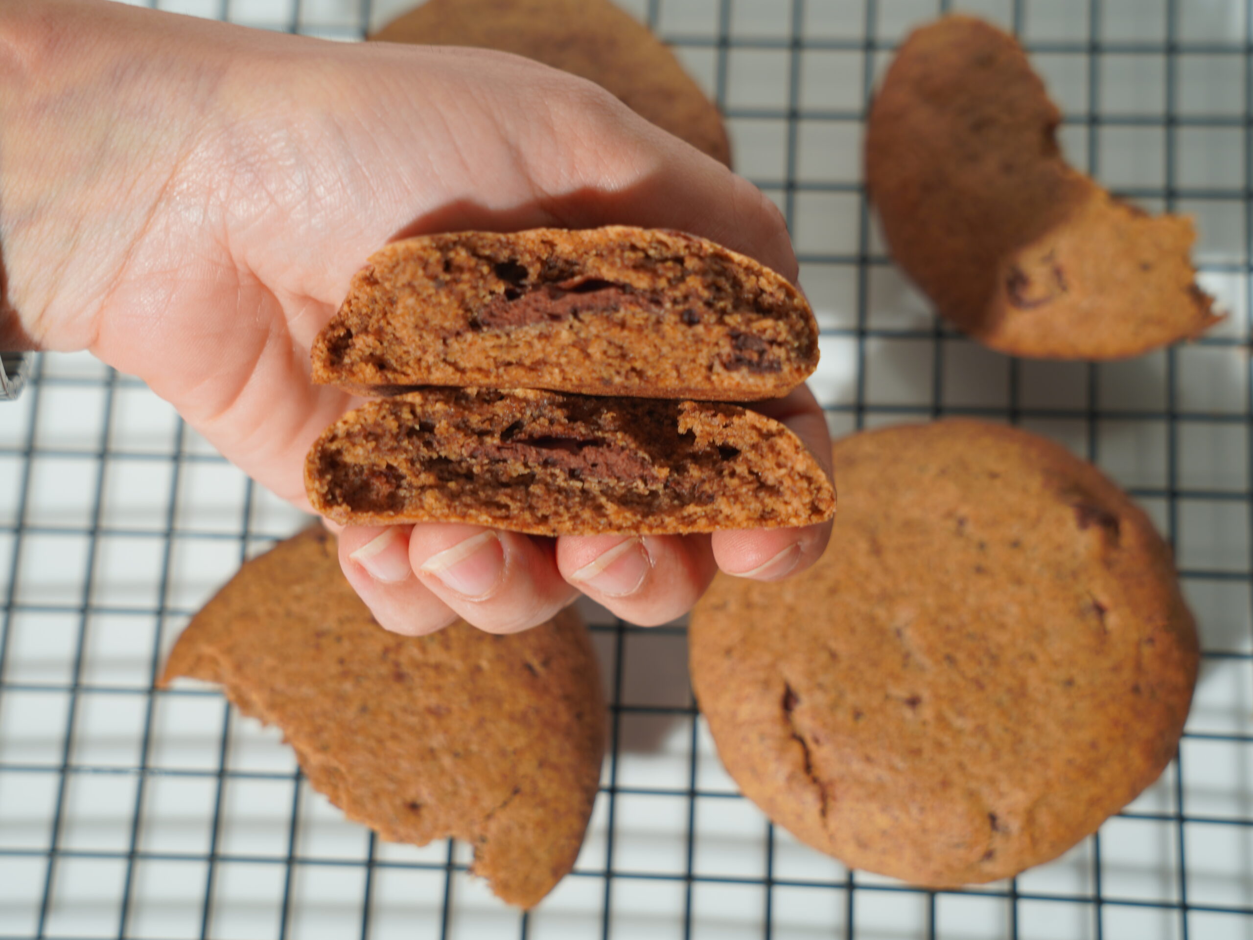 Golden, soft-baked cookie dough wrapped around a gooey, chocolate-hazelnut centre — our No-tella Stuffed Cookie is indulgence done right. Made with millet and oat flour, coconut sugar, hazelnuts, and dairy-free chocolate, it’s everything you love minus the refined sugar.