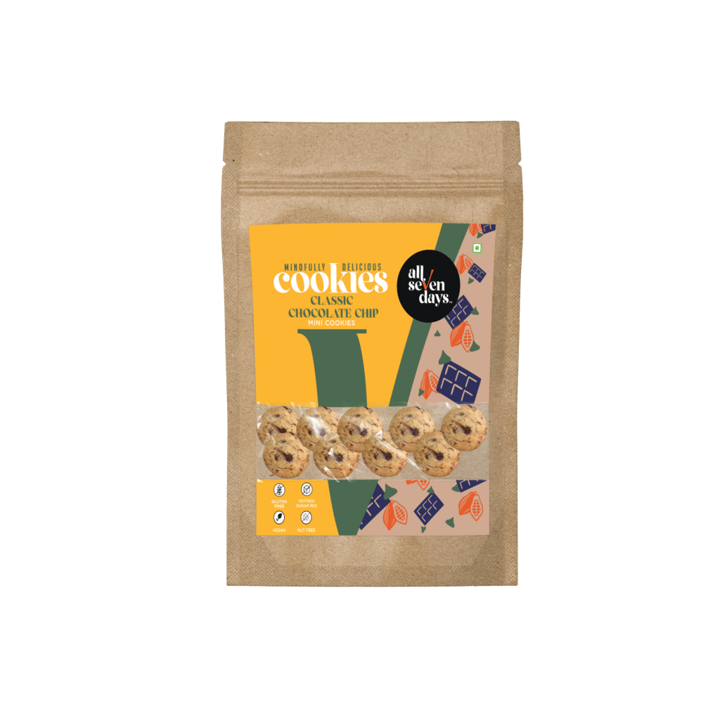 Our Classic Chocolate Chip Mini Cookies bring back all the nostalgia—minus the guilt. Made with jowar flour, brown rice flour, organic cold pressed coconut oil, jaggery powder, and dairy-free chocolate, these bite-sized delights are vegan, gluten-free, and refined sugar-free.